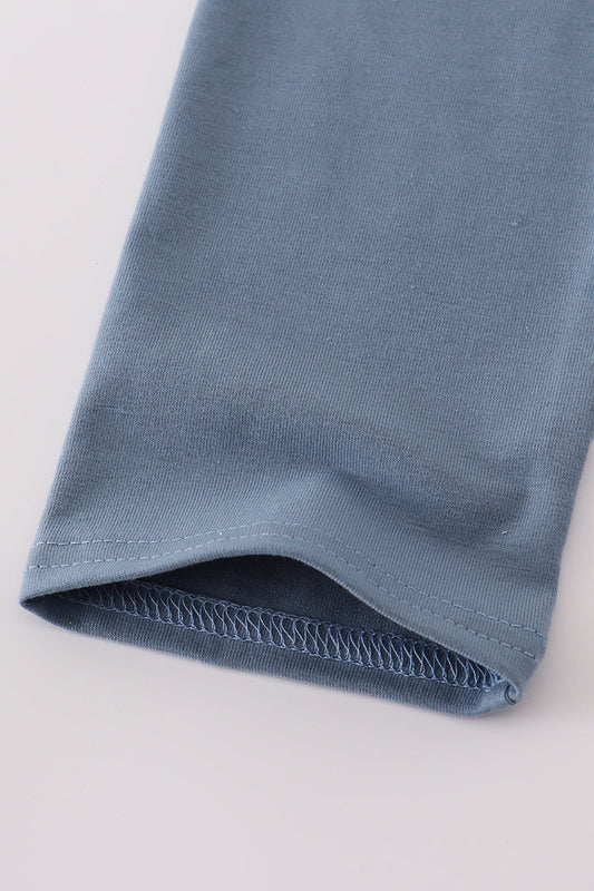 Blue pumpkin french knot ruffle shorts set
