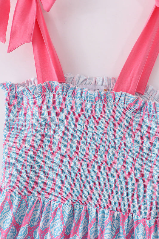 Blue rose hand smocked print dress