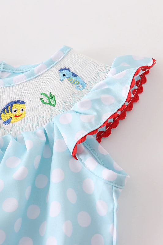 MINT GREEN POLKADOT MERMAID SMOCKED DRESS