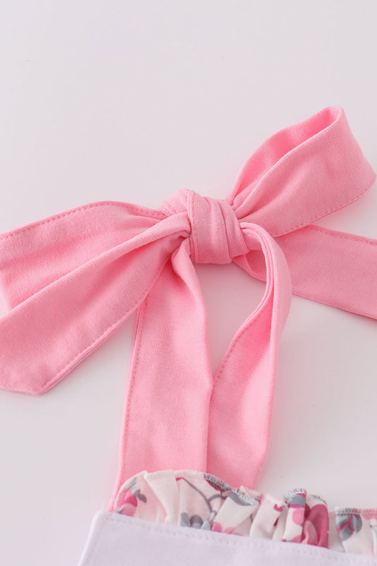 Pink floral print ruffle bow pants set