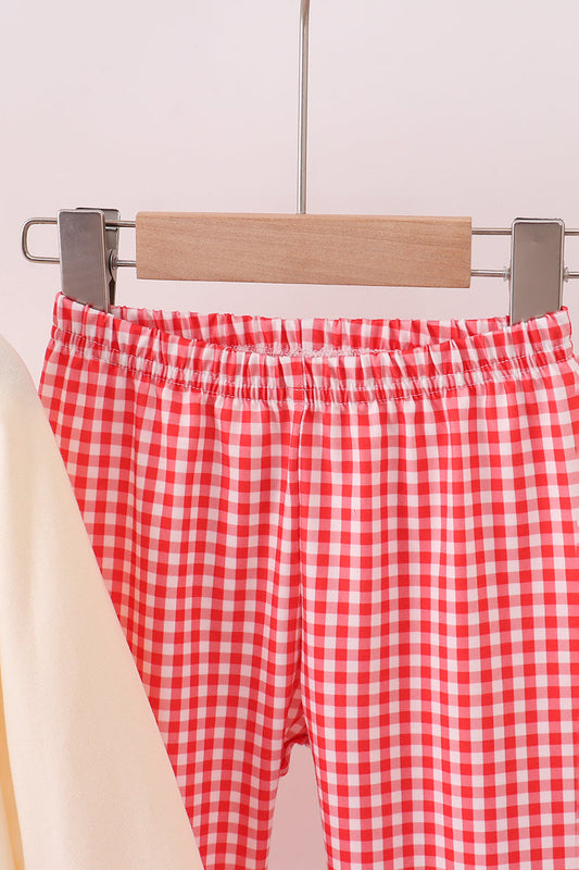 Pink nutcracker embroidery gingham pajama set
