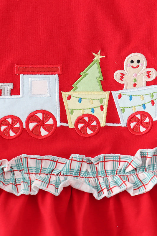 Red gingerbread applique ruffle dress