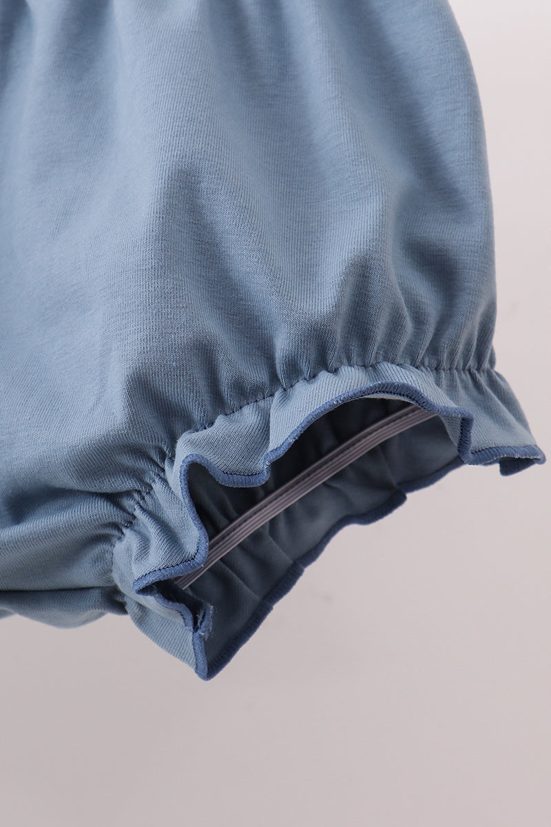 Dress your little one in charm with this Blue Floral Blessed Embroidery Bloomer Set. Featuring delicate blue floral embroidery and a playful "blessed" touch, it’s perfect for sunny days and joyful moments. Soft, comfortable fabric ensures all-day fun, while the bloomer design adds a cute, breezy style that’s as delightful as it is practical.