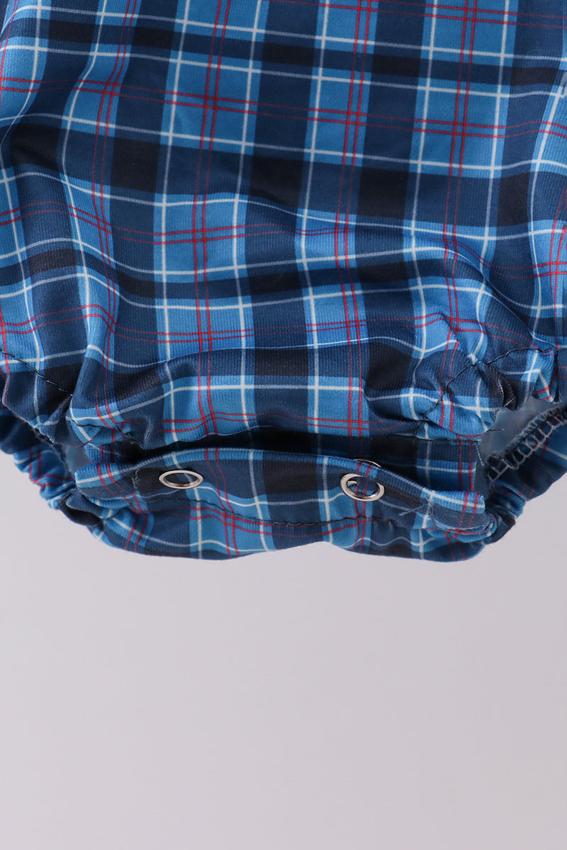 Celebrate the season with this charming Navy Nativity Embroidery Plaid Bubble! Its cozy plaid pattern and delightful nativity embroidery add festive cheer, while the bubble style keeps little ones comfy and cute all day. Perfect for holiday fun and joyful moments!